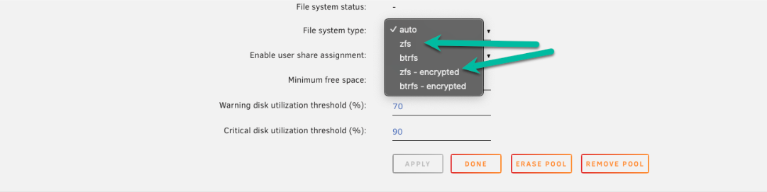 raptor) y configure Sistema de Archivos en Auto. - Finalice e inicie el array: Haga clic en Hecho, luego inicie el array.